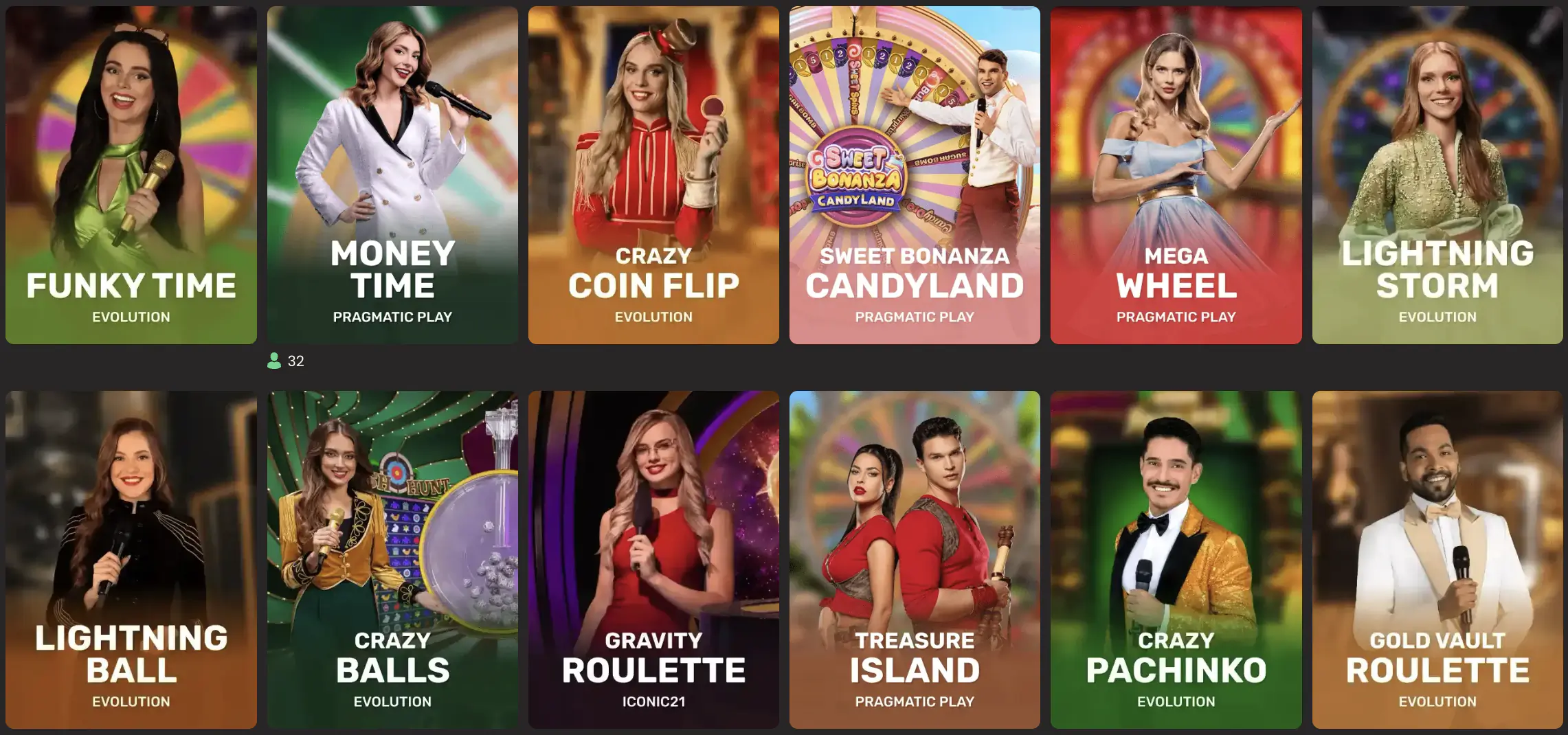 We make use of real hosts to handle the gameplay, offering varieties of games to choose from such as Crazy Time, Lighting Storm Live, Funky Time Live, and many more.